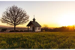The yellow hues of a spring sunrise accentuating the new grass of the season. The small chapel has become one of my favourite locations to relax and have a breather.